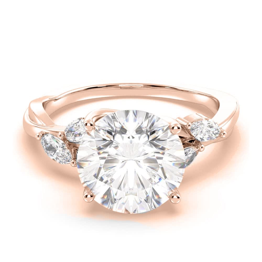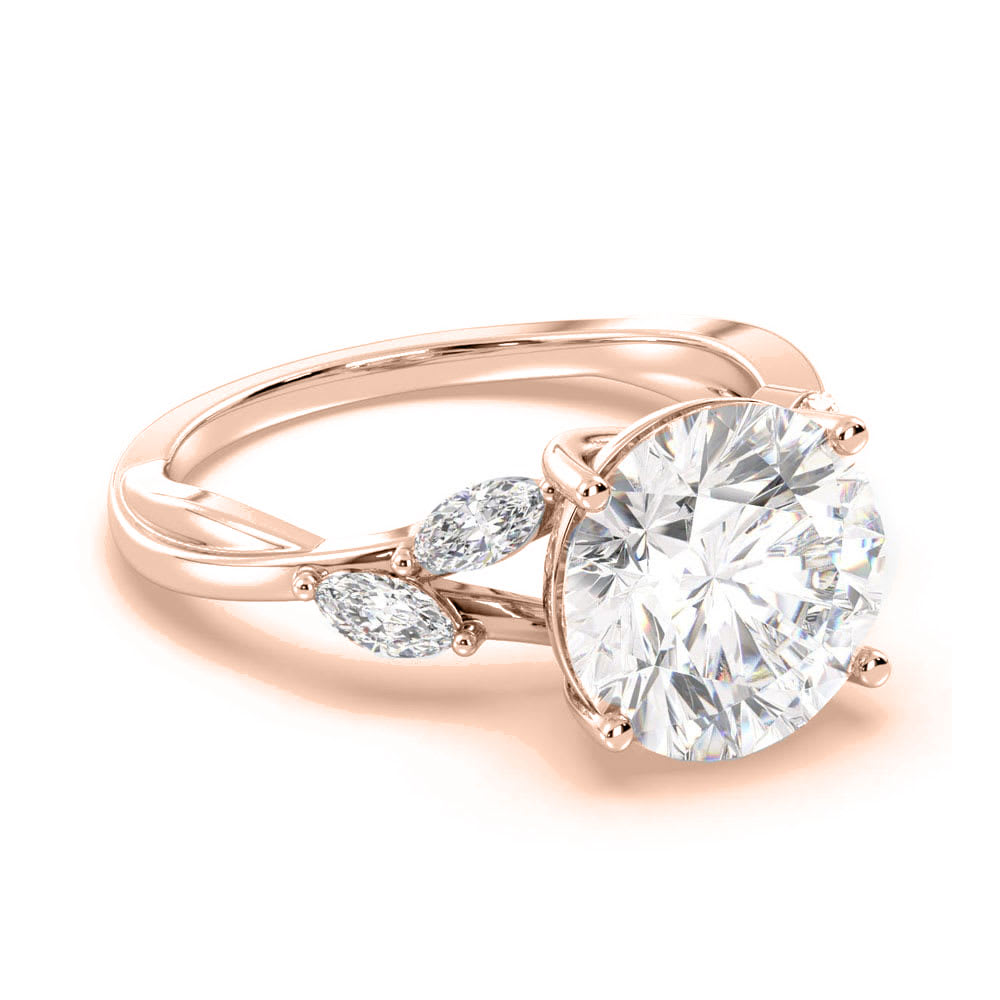 This women's engagement ring features a dazzling round brilliant diamond as it's focal point. Enhancing the central diamond in a unique and sophisticated pattern, two marquise diamonds are gracefully positioned on either side, creating a stunning contrast and adding an extra touch of allure to the design. All Temple and Grace jewellery is beautifully crafted to the highest standards and is made at our jewellery workshop directly by us (skilled jewellery craftsmen). This is why you can save over 40% when compared to high-street retail prices. We also offer a lifetime warranty and unmatched 100 day returns. You can shop online or book an appointment to visit our jewellery boutiques in Sydney, Melbourne, Brisbane, Perth and Adelaide.
