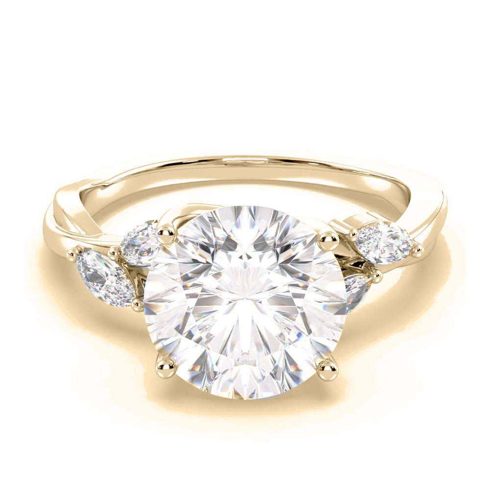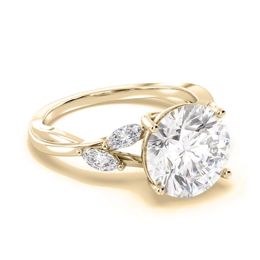 This women's engagement ring features a dazzling round brilliant diamond as it's focal point. Enhancing the central diamond in a unique and sophisticated pattern, two marquise diamonds are gracefully positioned on either side, creating a stunning contrast and adding an extra touch of allure to the design. All Temple and Grace jewellery is beautifully crafted to the highest standards and is made at our jewellery workshop directly by us (skilled jewellery craftsmen). This is why you can save over 40% when compared to high-street retail prices. We also offer a lifetime warranty and unmatched 100 day returns. You can shop online or book an appointment to visit our jewellery boutiques in Sydney, Melbourne, Brisbane, Perth and Adelaide.