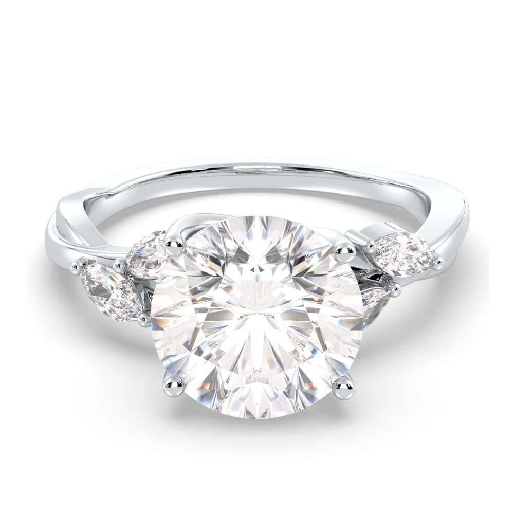 This women's engagement ring features a dazzling round brilliant diamond as it's focal point. Enhancing the central diamond in a unique and sophisticated pattern, two marquise diamonds are gracefully positioned on either side, creating a stunning contrast and adding an extra touch of allure to the design. All Temple and Grace jewellery is beautifully crafted to the highest standards and is made at our jewellery workshop directly by us (skilled jewellery craftsmen). This is why you can save over 40% when compared to high-street retail prices. We also offer a lifetime warranty and unmatched 100 day returns. You can shop online or book an appointment to visit our jewellery boutiques in Sydney, Melbourne, Brisbane, Perth and Adelaide.