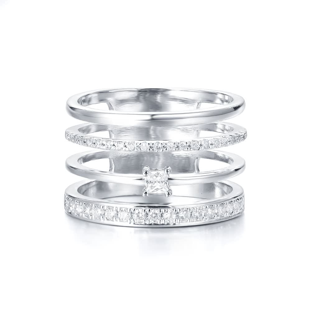 This beautifully crafted diamond ring is set with round brilliant cut diamonds in alternation bands in a pave setting. Different formations of the diamond setting make it a very unique ring.All our jewellery can be made available in 18K white gold, yellow gold, rose gold and platinum 950. Temple and Grace are the only Australian jewellery store to offer a 100% peace-of-mind guarantee. It's simple, you either love your new diamond ring or get your money back. Need it customised? Call us for a no-obligation quote. Being Sydney based jewellery designers and makers means that we can offer you incredible value for your money. When you buy your jewellery direct from us, you cut out on the expensive high-street stores and save up to 40% on your jewellery.