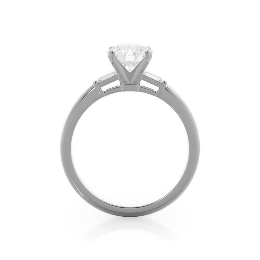 This women's diamond engagement ring with a round brilliant natural diamond in the centre and baguette diamonds on both sides gives a beautiful and elegant look. It is set in a prong setting, which allows light to enter the diamond from all angles, enhancing its beauty. It has polished and rounded edge, creating a sleek and comfortable design. All Temple and Grace jewellery is beautifully crafted to the highest standards and is made at our jewellery workshop directly by us (skilled jewellery craftsmen). This is why you can save over 40% when compared to high-street retail prices. We also offer a lifetime warranty and unmatched 100 day returns. You can shop online or book an appointment to visit our jewellery boutiques in Sydney, Melbourne, Brisbane and Perth.