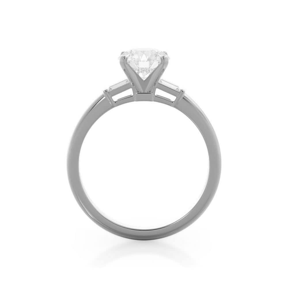 This women's diamond engagement ring with a round brilliant lab grown diamond in the centre and baguette diamonds on both sides gives a beautiful and elegant look. It is set in a prong setting, which allows light to enter the diamond from all angles, enhancing its beauty. It has polished and rounded edge, creating a sleek and comfortable design. All Temple and Grace jewellery is beautifully crafted to the highest standards and is made at our jewellery workshop directly by us (skilled jewellery craftsmen). This is why you can save over 40% when compared to high-street retail prices. We also offer a lifetime warranty and unmatched 100 day returns. You can shop online or book an appointment to visit our jewellery boutiques in Sydney, Melbourne, Brisbane and Perth.