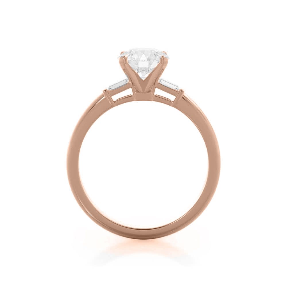 This women's diamond engagement ring with a round brilliant lab grown diamond in the centre and baguette diamonds on both sides gives a beautiful and elegant look. It is set in a prong setting, which allows light to enter the diamond from all angles, enhancing its beauty. It has polished and rounded edge, creating a sleek and comfortable design. All Temple and Grace jewellery is beautifully crafted to the highest standards and is made at our jewellery workshop directly by us (skilled jewellery craftsmen). This is why you can save over 40% when compared to high-street retail prices. We also offer a lifetime warranty and unmatched 100 day returns. You can shop online or book an appointment to visit our jewellery boutiques in Sydney, Melbourne, Brisbane and Perth.