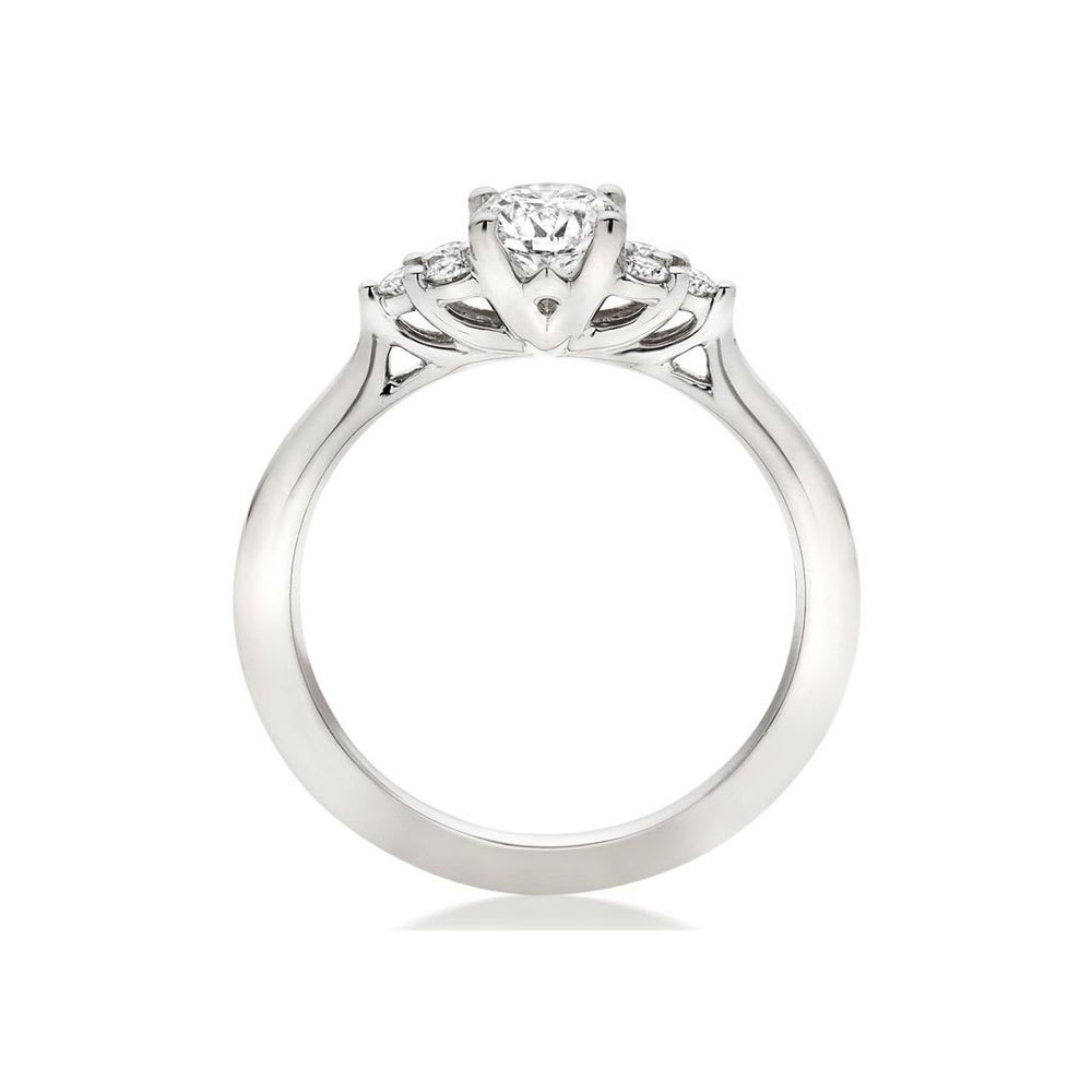 This classic trilogy engagement ring with round brilliant diamonds is handcrafted with delicate prongs. This gorgeous diamond ring is set with a 0.50ct GIA certified round brilliant cut diamond in the centre and three round diamond on either side of the centre stone. The beautiful design is forms and elegant trilogy setting. Since we are also diamond wholesalers, we have Australia's largest range of loose diamonds. We are extremely particular about the quality of diamonds that go into the making of our engagement rings. We are the ONLY jewellery store that offers a 100 day full refund even for a customised engagement ring. We can offer this only because we handpick all the diamonds that go into the making of our engagement rings. Being expert Australian jewellery craftsmen ourselves, we can also guarantee the highest levels of craftsmanship experienced. You can shop online or visit us in Sydney or Melbourne to view and select a diamond for your engagement ring. We can guarantee bigger and/or better diamonds than any other jeweller, within your budget.