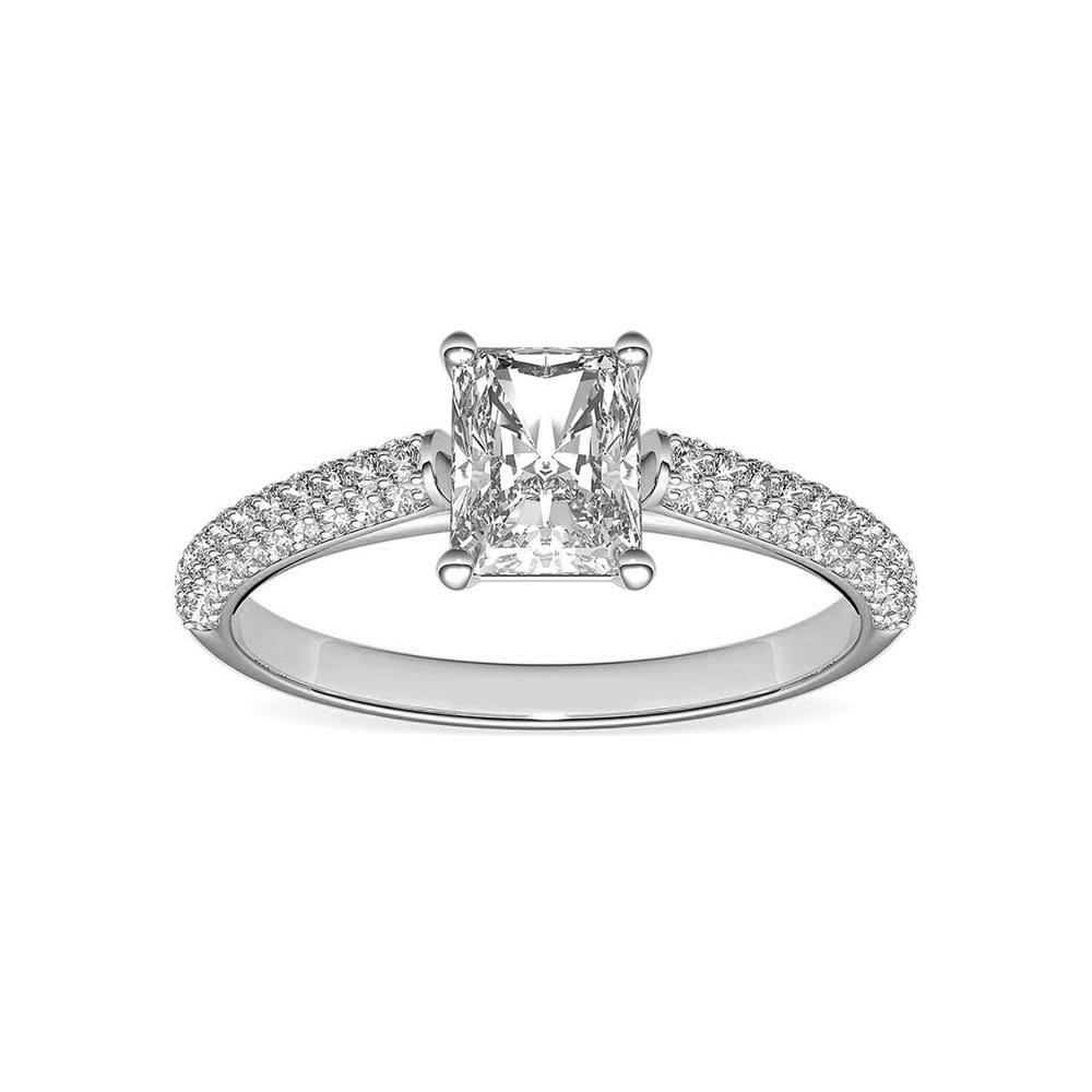 Stunning and timeless, this dazzling engagement ring is truly magnificent. It displays a GIA certified 0.40 carat radiant cut diamond secured in four prongs and set on a gold shank encrusted with a triple layer of diamond accents in a claw setting. The distinctive diamond band evokes a classic appeal with a dash of luxury and glamour. This ring is available in 18K white, yellow, rose gold, and platinum 950. The jewellery is beautifully handmade to the highest standards. Shop directly from us and save over 40% when compared to high-street retail prices. We also offer unmatched 100 day returns. Buy online or book an appointment to visit our jewellery boutiques in Sydney and Melbourne.