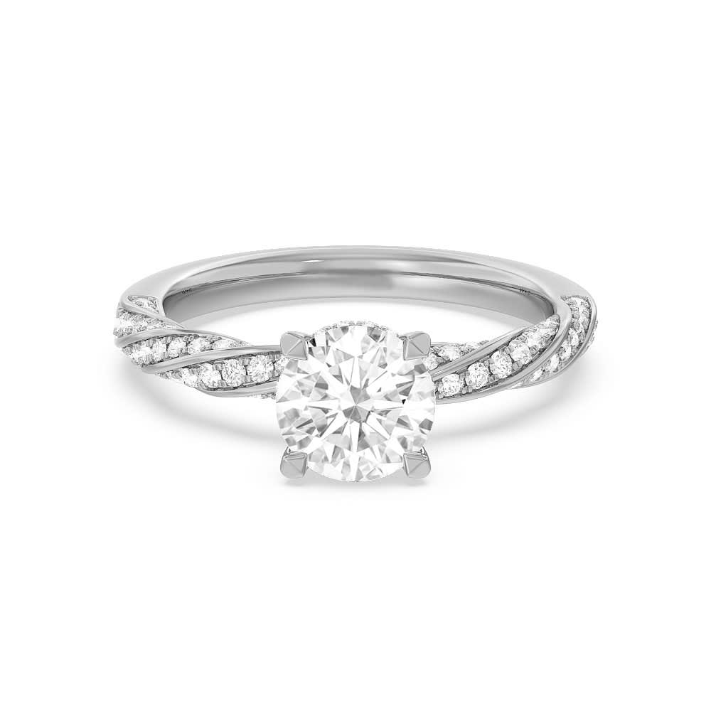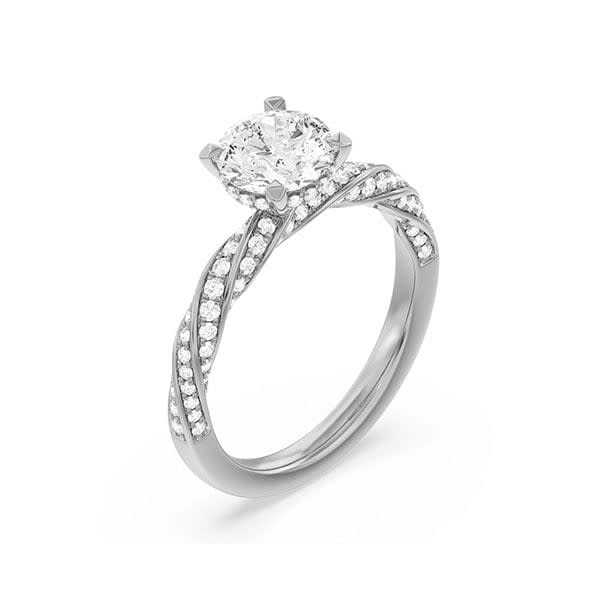 A round brilliant natural diamond is the focal point of this engagement ring for women. A hidden halo of smaller stones surrounds the core diamond, giving it additional complexity and grace. The band's shanks, which are embellished with tiny diamonds, have a lovely curled pattern. All Temple and Grace jewellery is beautifully crafted to the highest standards and is made at our jewellery workshop directly by us (skilled jewellery craftsmen). This is why you can save over 40% when compared to high-street retail prices. We also offer a lifetime warranty and unmatched 100 day returns. You can shop online or book an appointment to visit our jewellery boutiques in Sydney, Melbourne, Brisbane and Perth.