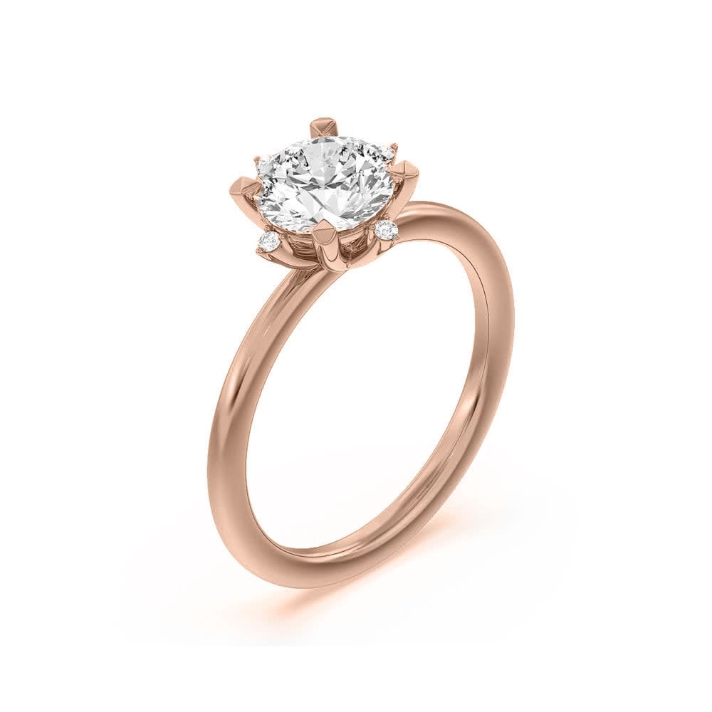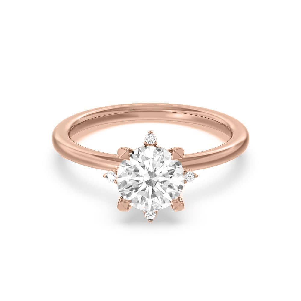 This women's engagement ring has a stunning round shaped natural diamond, which is securely set in a four prong setting .The four smaller diamonds, each set in a three prong setting in between the alternate prongs. These additional stones add extra sparkle and detail to the design, without overpowering the central diamond. All Temple and Grace jewellery is beautifully crafted to the highest standards and is made at our jewellery workshop directly by us (skilled jewellery craftsmen). This is why you can save over 40% when compared to high-street retail prices. We also offer a lifetime warranty and unmatched 100 day returns. You can shop online or book an appointment to visit our jewellery boutiques in Sydney, Melbourne, Brisbane and Perth.