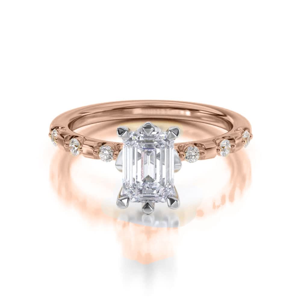 This women's engagement ring showcases an emerald cut natural diamond as it's centre. It is further elevated by a hidden petal shaped design of smaller diamonds that gracefully accent the focal stone, adding an extra layer of depth and visual interest. It's shanks has a row of interspaced diamonds, creating a seamless and luxurious look that beautifully complements the central stone. All Temple and Grace jewellery is beautifully crafted to the highest standards and is made at our jewellery workshop directly by us (skilled jewellery craftsmen). This is why you can save over 40% when compared to high-street retail prices. We also offer a lifetime warranty and unmatched 100 day returns. You can shop online or book an appointment to visit our jewellery boutiques in Sydney, Melbourne, Brisbane and Perth.