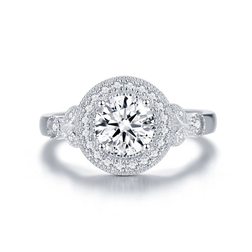 This beautiful vintage diamond ring featuring a Round Brilliant Cut in the center with an Art Deco halo and a miligrain finish. This gorgeous diamond engagement ring is set with 0.90ct GIA Certified round brilliant cut diamond in the center with other diamonds forming a vintage halo and diamonds on the band. Fully handcrafted Vintage diamond engagement ring is made by our master jeweller. This ring style can be made to accommodate a center stone of any size/quality to meet your desired budget. All rings are available in Platinum, 18K White, Yellow, and Rose Gold. Please contact Temple and Grace team to learn more about this ring or to request pricing on something specific you may have in mind.