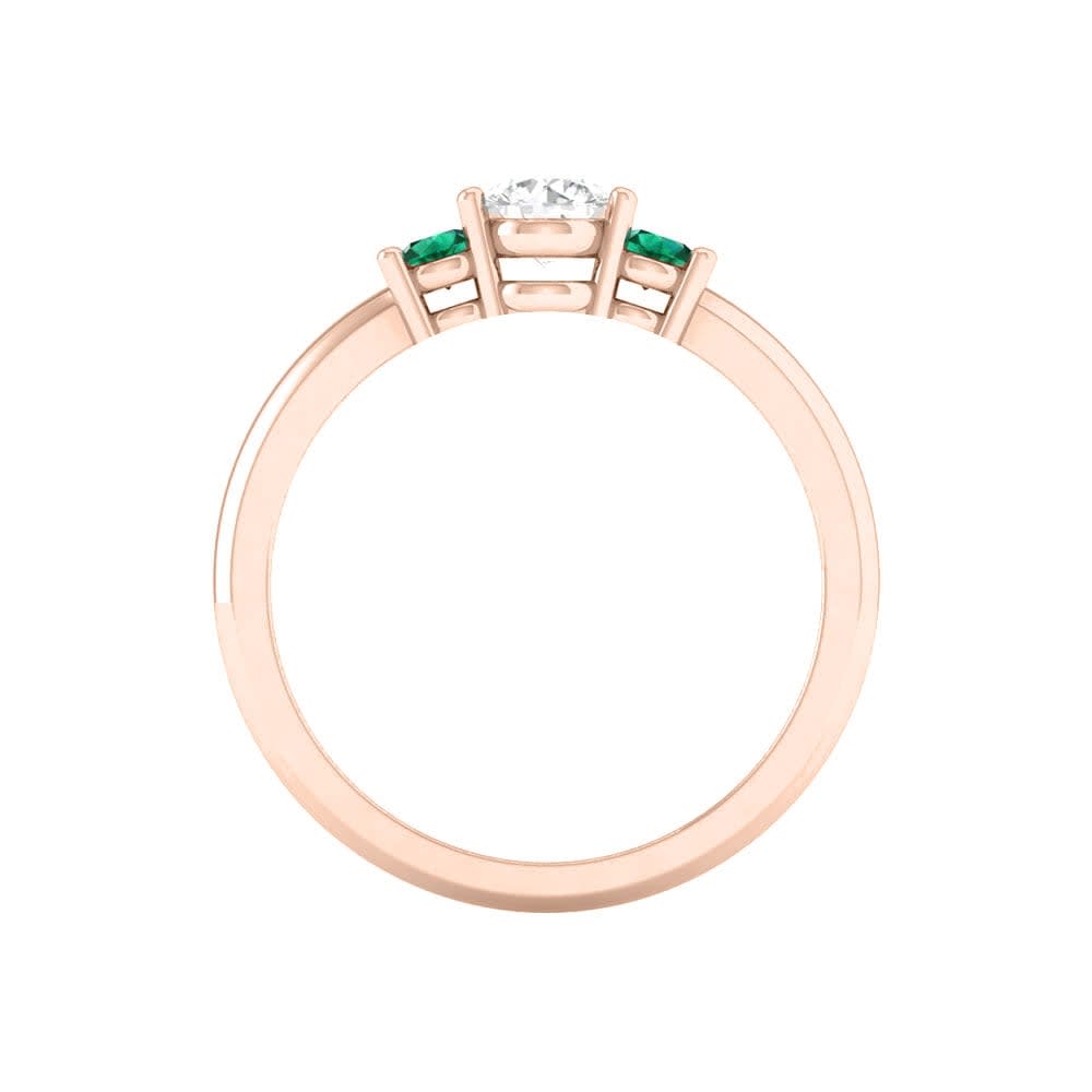This elegant women's ring showcases a gleaming round brilliant diamond as it's focal point. On either side of the brilliant diamond, vivid emeralds are carefully arranged to enhance the overall allure. The polished shanks of the band contribute to it's modern and sleek design, ensuring a comfortable and smooth fit for everyday wear. All Temple and Grace jewellery is beautifully crafted to the highest standards and is made at our jewellery workshop directly by us (skilled jewellery craftsmen). This is why you can save over 40% when compared to high-street retail prices. We also offer a lifetime warranty and unmatched 100 day returns. You can shop online or book an appointment to visit our jewellery boutiques in Sydney, Melbourne, Brisbane, Perth and Adelaide.
