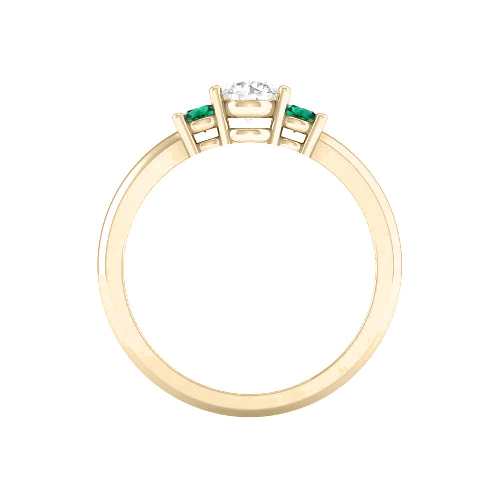 This elegant women's ring showcases a gleaming round brilliant diamond as it's focal point. On either side of the brilliant diamond, vivid emeralds are carefully arranged to enhance the overall allure. The polished shanks of the band contribute to it's modern and sleek design, ensuring a comfortable and smooth fit for everyday wear. All Temple and Grace jewellery is beautifully crafted to the highest standards and is made at our jewellery workshop directly by us (skilled jewellery craftsmen). This is why you can save over 40% when compared to high-street retail prices. We also offer a lifetime warranty and unmatched 100 day returns. You can shop online or book an appointment to visit our jewellery boutiques in Sydney, Melbourne, Brisbane, Perth and Adelaide.