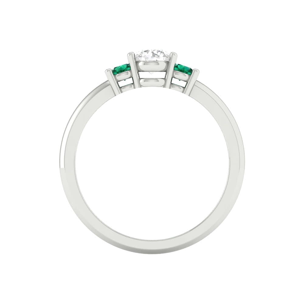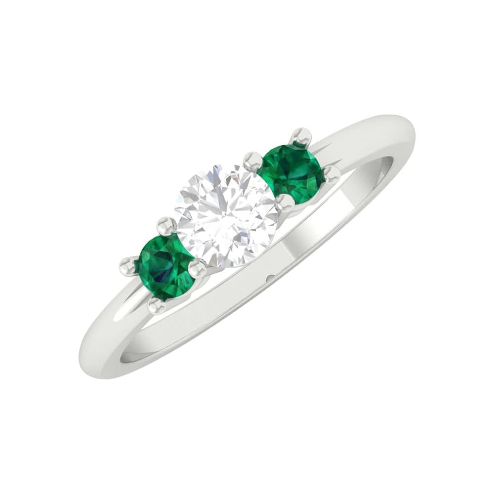This elegant women's ring showcases a gleaming round brilliant diamond as it's focal point. On either side of the brilliant diamond, vivid emeralds are carefully arranged to enhance the overall allure. The polished shanks of the band contribute to it's modern and sleek design, ensuring a comfortable and smooth fit for everyday wear. All Temple and Grace jewellery is beautifully crafted to the highest standards and is made at our jewellery workshop directly by us (skilled jewellery craftsmen). This is why you can save over 40% when compared to high-street retail prices. We also offer a lifetime warranty and unmatched 100 day returns. You can shop online or book an appointment to visit our jewellery boutiques in Sydney, Melbourne, Brisbane, Perth and Adelaide.