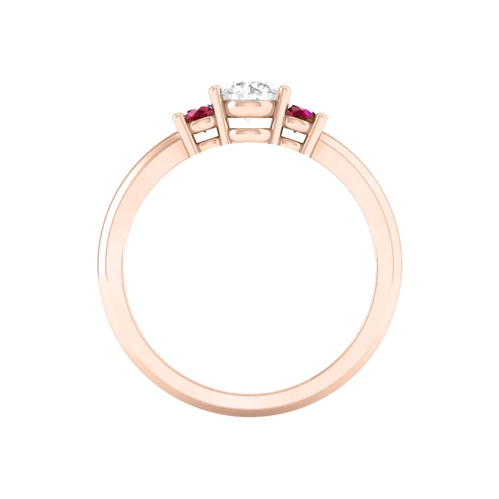 This enchanting women's ring highlights a stunning round brilliant diamond as the focal point. Adorning either side of the magnificent diamond are vivid rubies, adding a touch of vibrant colour to the design. The polished shanks of the band contribute to it's modern and sleek design, ensuring a comfortable and smooth fit. It is an ideal accessory for elevating the wearer's style on any special occasion. All Temple and Grace jewellery is beautifully crafted to the highest standards and is made at our jewellery workshop directly by us (skilled jewellery craftsmen). This is why you can save over 40% when compared to high-street retail prices. We also oAffer a lifetime warranty and unmatched 100 day returns. You can shop online or book an appointment to visit our jewellery boutiques in Sydney, Melbourne, Brisbane, Perth and Adelaide.