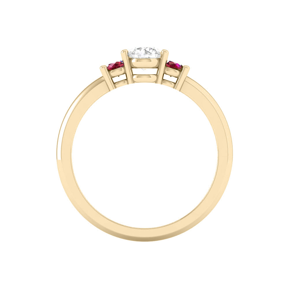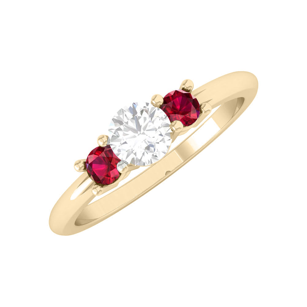 This enchanting women's ring highlights a stunning round brilliant diamond as the focal point. Adorning either side of the magnificent diamond are vivid rubies, adding a touch of vibrant colour to the design. The polished shanks of the band contribute to it's modern and sleek design, ensuring a comfortable and smooth fit. It is an ideal accessory for elevating the wearer's style on any special occasion. All Temple and Grace jewellery is beautifully crafted to the highest standards and is made at our jewellery workshop directly by us (skilled jewellery craftsmen). This is why you can save over 40% when compared to high-street retail prices. We also oAffer a lifetime warranty and unmatched 100 day returns. You can shop online or book an appointment to visit our jewellery boutiques in Sydney, Melbourne, Brisbane, Perth and Adelaide.