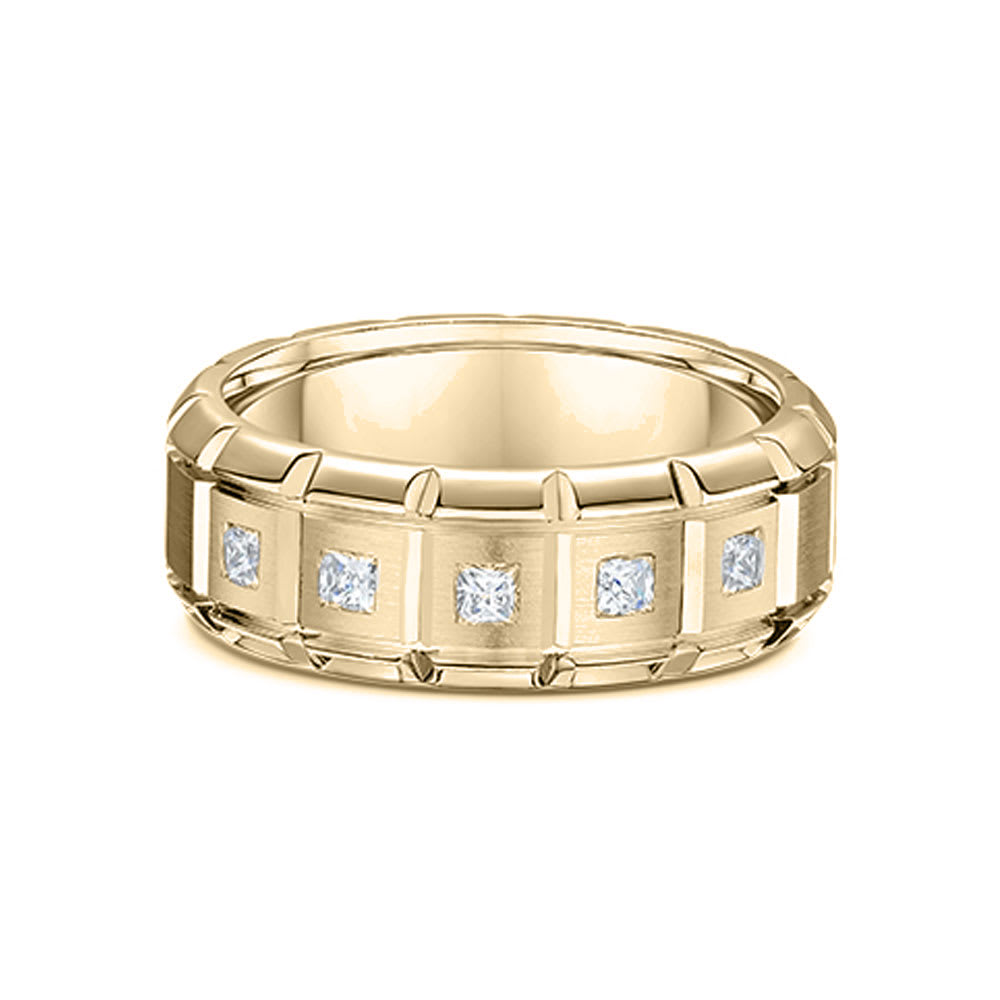 This ring radiates strength and refinement with its bold, structured design. A series of square-set diamonds encircle the band, each sparkling with clarity and brilliance, creating a rhythm of light that catches every glance. The geometric pattern gives it a modern, architectural feel, while the seamless symmetry enhances its timeless appeal. Elegant yet commanding, it is a statement of sophistication and enduring beauty. All Temple and Grace jewellery is beautifully crafted to the highest standards and is made at our jewellery workshop directly by us (skilled jewellery craftsmen). This is why you can save over 40% when compared to high-street retail prices. We also offer a lifetime warranty and unmatched 100 day returns. You can shop online or book an appointment to visit our jewellery boutiques in Sydney, Melbourne, Brisbane, Perth and Adelaide.