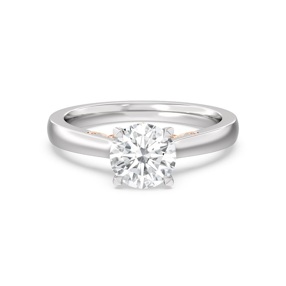 This women's engagement ring features a lab grown round brilliant diamond as it's centre, which is set in a beautiful cathedral setting that lifts the diamond up. It is unique because of hidden flower scroll gallery detail underneath the central stone. This detail features delicate floral patterns that are etched into the band, creating a stunning visual effect. The gallery also includes a hidden diamond accent detail, which adds an extra layer of sparkle to it and makes it even more special. It is perfect for someone who appreciates classic designs with a twist of uniqueness. All Temple and Grace jewellery is beautifully crafted to the highest standards and is made at our jewellery workshop directly by us (skilled jewellery craftsmen). This is why you can save over 40% when compared to high-street retail prices. We also offer a lifetime warranty and unmatched 100 day returns. You can shop online or book an appointment to visit our jewellery boutiques in Sydney, Melbourne, Brisbane and Perth.